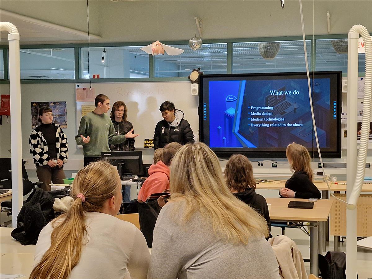 Beskrivelse: Et samarbeidsprosjekt med en finsk videregående skole i Esbo. Elevene på vg1 informasjonsteknologi og medieproduksjon skal sammen med sine finske partnere utvikle en chatbot som kan generere tilpassede undervisningsopplegg til ulike elevgrupper.